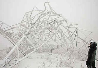被冰雪嚴(yán)重破壞的鐵塔。葉義德