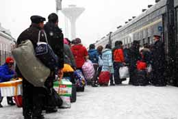 1月23日,外來(lái)務(wù)工人員冒雪在煙臺(tái)火車站登車。當(dāng)日,山東省煙臺(tái)市出現(xiàn)風(fēng)雪天氣,大批返鄉(xiāng)旅客冒雪登程。當(dāng)?shù)罔F路部門及時(shí)啟動(dòng)應(yīng)急預(yù)案,在進(jìn)站路面上撒上防滑沙,確保旅客出行平安。