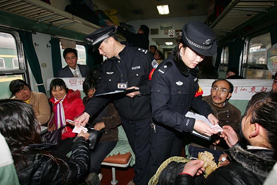 1月21日,重慶鐵路警方正式全面啟動(dòng)了火車票票源調(diào)查行動(dòng)。當(dāng)日300多名鐵路警察對(duì)5000多名在重慶地區(qū)購買火車票的旅客進(jìn)行票源調(diào)查。據(jù)了解,通過向旅客調(diào)查車票來源,可以為鐵路警方精確打擊“倒票”的違法活動(dòng)、堵截高價(jià)票源提供第一線索,保障春運(yùn)期間火車票對(duì)出行旅客的正常供應(yīng)。