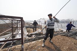 2月17日,舒城縣農(nóng)科所工作人員在進(jìn)行災(zāi)后重建。1月中下旬,安徽舒城縣遭遇罕見雪災(zāi),工農(nóng)業(yè)生產(chǎn)、群眾住房以及供電、廣播、通信、交通等基礎(chǔ)設(shè)施損失嚴(yán)重。目前,當(dāng)?shù)卣褪転?zāi)群眾同心協(xié)力,正采取一系列措施積極開展災(zāi)后重建和生產(chǎn)自救。