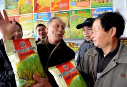 2月17日,福建省建陽(yáng)市高級(jí)農(nóng)藝師(前左)在指導(dǎo)農(nóng)民邵良泰(前右)選購(gòu)稻種。