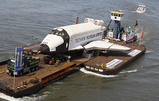 7日,一艘駁船運載著前蘇聯(lián)“暴風雪”號航天飛機行駛在德國西部韋瑟爾附近的萊茵河上!氨╋L雪”號無人駕駛航天飛機將在德國施派爾展出,它將是世界上第一艘向普通觀眾展出的航天飛機原型。“暴風雪”號于1988年11月15日發(fā)射升空,成功繞地球飛行兩圈后降落。新華社/路透