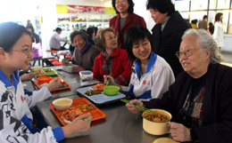天津:社區(qū)與學(xué)校合作 方便空巢老人就餐