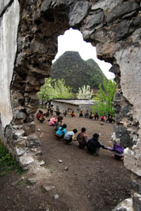 4月11日,大寨小學(xué)的孩子在廢棄的校舍前玩游戲。那是村里留給孩子的唯一一塊空地。 地處西南邊陲川、滇、黔交界的云南省鎮(zhèn)雄縣尖山鄉(xiāng)長(zhǎng)安村大寨小學(xué)原先是一所擁有300多名學(xué)生的完小,1999年該校使用了30年的校舍被列入危房而無(wú)力再進(jìn)行改造,絕大多數(shù)學(xué)生只能步行十余公里到周邊的鄉(xiāng)鎮(zhèn)去借讀,但仍有30多名低年級(jí)孩子面臨路途難、無(wú)?缮系睦Ь场4笳W(xué)唯一的一名教師孫元禮為了幫助村里孩子上學(xué),主動(dòng)將自己家的民房騰出來(lái)作為教室,保證村里年幼孩子的正常就學(xué),一用就是數(shù)年?h教育部門介紹,類似大寨小學(xué)這樣面臨困境的深山學(xué)校在鎮(zhèn)雄還有100多所,經(jīng)濟(jì)落后交通不便使這些學(xué)校的危房短時(shí)間內(nèi)難以完成改造。 |