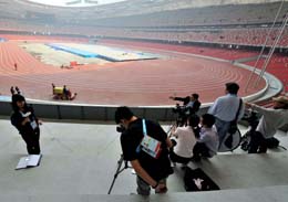 4月16日,多家媒體在國(guó)家體育場(chǎng)內(nèi)采訪(fǎng)拍攝。當(dāng)日,國(guó)家體育場(chǎng)(“鳥(niǎo)巢”)開(kāi)始對(duì)注冊(cè)媒體開(kāi)放。4月18日至19日,“好運(yùn)北京”國(guó)際田聯(lián)競(jìng)走挑戰(zhàn)賽將在國(guó)家體育場(chǎng)舉行,這是國(guó)家體育場(chǎng)的第一場(chǎng)正式賽事。 |