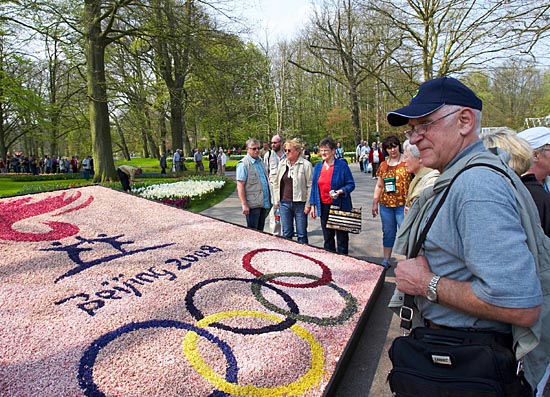23日,在荷蘭利瑟鎮(zhèn)的庫肯霍夫郁金香公園內(nèi),游客在欣賞用花瓣拼成的“BEIJING 2008”圖案。近日,庫肯霍夫郁金香公園將中國和北京奧運(yùn)作為今年的活動(dòng)主題,園內(nèi)的各種花卉和裝飾都體現(xiàn)著中華文化的神韻和奧運(yùn)精神。