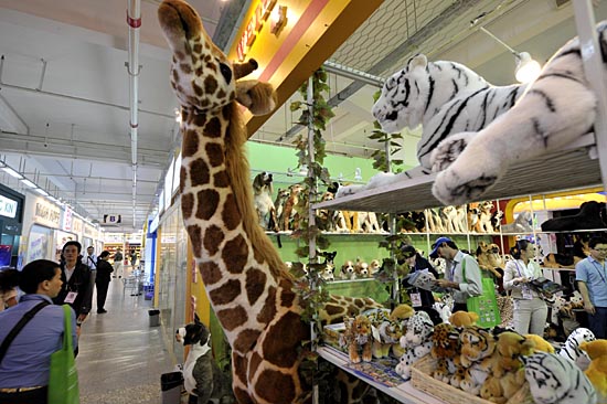 4月28日,在第103屆廣交會上,一家生產大型仿真動物玩具的企業(yè)吸引了外商前來洽談。正在舉行的第103屆廣交會上,越來越多的玩具企業(yè)在歷盡磨難后開始重新思考自己的定位,從純粹為跨國公司做加工,向重設計、重質量、創(chuàng)品牌的方向發(fā)展。玩具行業(yè)在重重壓力下謀求“脫胎換骨”。
