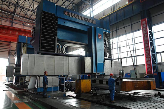我國重型機(jī)床生產(chǎn)基地——齊重?cái)?shù)控股份有限公司突破世界高端技術(shù)難關(guān),自主研制的三臺(tái)高精度、高效率的風(fēng)力發(fā)電設(shè)備成套加工數(shù)控機(jī)床,各項(xiàng)指標(biāo)都達(dá)到世界先進(jìn)水平。其中,一臺(tái)“數(shù)控立式磨床”因加工工件精度已達(dá)到世界最高的3‰毫米,改寫了此前我國同類設(shè)備長期依賴進(jìn)口的歷史。 | |