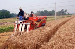 5月26日,安徽蕪湖縣合心村竹元拐農(nóng)機(jī)作業(yè)合作社成員駕著收割機(jī)為農(nóng)民收割小麥。 夏收夏種季節(jié),安徽蕪湖縣合心村竹元拐農(nóng)機(jī)作業(yè)合作社組成助耕服務(wù)隊(duì),每天出動(dòng)近20臺(tái)拖拉機(jī)、收割機(jī)和插秧機(jī),為農(nóng)民開展機(jī)收小麥、機(jī)耕打田和機(jī)插秧訂單服務(wù),以減輕農(nóng)民勞動(dòng)強(qiáng)度,提高夏收夏種進(jìn)度。