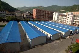 這是6月4日拍攝的位于略陽(yáng)二中操場(chǎng)的高考考點(diǎn)。經(jīng)有關(guān)方面人員連續(xù)幾天的奮戰(zhàn),陜西漢中市地震災(zāi)區(qū)寧強(qiáng)縣、略陽(yáng)縣已搭建完成了112間防震活動(dòng)板房,兩縣3045名學(xué)生將在這些“活動(dòng)考場(chǎng)”中如期參加高考。 |