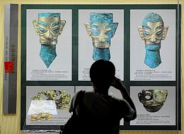 6月15日,游客在四川省廣漢市三星堆遺址博物館內(nèi)參觀。面對大地震后四川旅游業(yè)的低迷狀況,四川省政府決定,開始恢復部分旅游市場。
