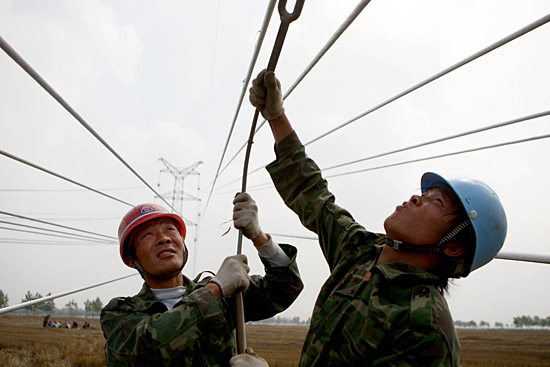 連日來,安徽淮北供電公司員工加緊架設臨渙電廠到500千伏濉溪變電所的220千伏高壓輸電線路,以確保華東地區(qū)夏日用電高峰和防汛抗旱用電。