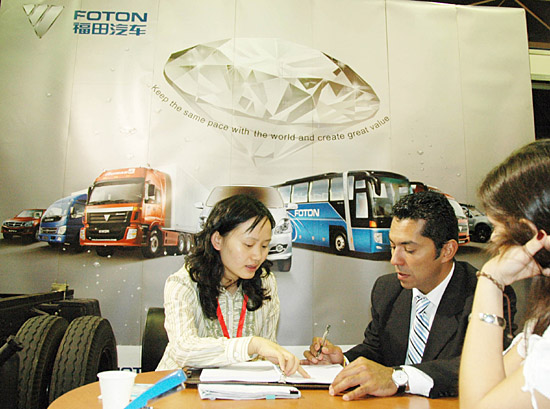 25日,在委內(nèi)瑞拉首都加拉加斯舉行的2008年中國工業(yè)產(chǎn)品(委內(nèi)瑞拉)博覽會上,一位中國參展商(左)在與客戶洽談。當(dāng)日,2008年中國工業(yè)產(chǎn)品(委內(nèi)瑞拉)博覽會在加拉加斯國際展覽中心開幕,來自中國的80多家企業(yè)開設(shè)展臺尋覓商機(jī)。