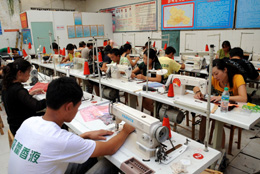 7月1日,在四川省彭州市一所職業(yè)技能培訓(xùn)學(xué)校,來自彭州災(zāi)區(qū)的學(xué)員們在學(xué)習(xí)電動縫紉。為解決災(zāi)區(qū)群眾的就業(yè)問題,彭州市就業(yè)局與當(dāng)?shù)嘏嘤?xùn)學(xué)校聯(lián)合開辦免費(fèi)電動縫紉技術(shù)培訓(xùn)班,并對學(xué)習(xí)期滿后合格的學(xué)員進(jìn)行就業(yè)安置。