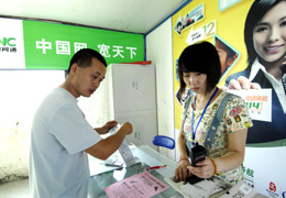 7月5日,在四川都江堰市幸福家園安置點(diǎn),顧客在活動板房內(nèi)的網(wǎng)通應(yīng)急營業(yè)廳辦理業(yè)務(wù)。搶通修復(fù)因?yàn)?zāi)損毀的供水、道路、電力、通信等基礎(chǔ)設(shè)施,對抗震救災(zāi)的順利開展至關(guān)重要,也是災(zāi)后重建和恢復(fù)生產(chǎn)的重要前提。記者采訪了解到,目前四川地震災(zāi)區(qū)水、電、路和通信等基礎(chǔ)設(shè)施基本恢復(fù)。