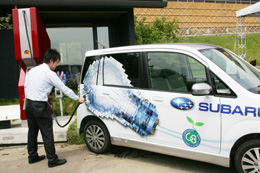 日本在八國峰會(huì)上展示電動(dòng)及電燃混合動(dòng)力汽車。7月8日,工作人員為一輛電動(dòng)車充電。這種像加油機(jī)的充電器15分鐘可完成一輛電動(dòng)車的充電。電動(dòng)車一次充電可行駛80公里。可以預(yù)測(cè)在油價(jià)不斷高漲的情勢(shì)下,各國都在通過征收燃油稅等政策措施和加快研制電燃混合動(dòng)力汽車等技術(shù)手段,推動(dòng)節(jié)能進(jìn)程。新華社記者:王成云