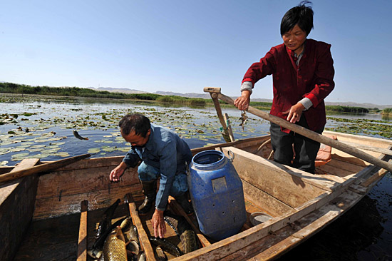 目前,新疆最大的漁業(yè)生產(chǎn)基地博斯騰湖正處于捕撈旺季。為保持當?shù)貪O業(yè)可持續(xù)增長,博湖縣近年來加大魚種增殖放流力度和水域生態(tài)改善,2008年計劃投放大規(guī)格魚種200噸。