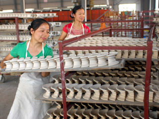 江西萍鄉(xiāng)加快改造升級(jí)傳統(tǒng)產(chǎn)業(yè)。圖為江西省萍鄉(xiāng)市黃冠化工填料有限公司的職工在搬運(yùn)瓷環(huán)。新華社記者:周科