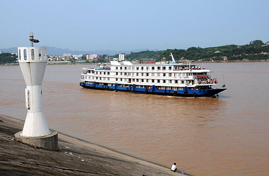 7月28日,一艘游輪進入葛洲壩三江航道。當日,一直持續(xù)較高水位的長江宜昌段水位從前幾天的49.92米下降到47米。據三峽水文局“水情綜述”表明,近期長江上游不會有較大來水,長江宜昌段水位將持續(xù)緩慢下降。