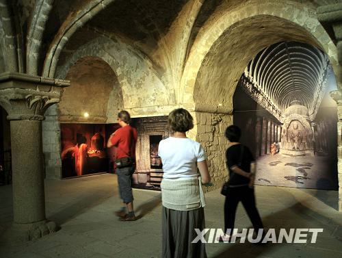 8月9日,游人在法國(guó)圣米歇爾山的修道院中觀看攝影展《天地之間:圣米歇爾山和世界各地的圣山》。該攝影展將攝影師讓-米歇爾·紀(jì)堯的作品安置在修道院內(nèi)外展示,使圖片與古跡融為一體。游人置身其中,在游覽古跡的同時(shí)也能領(lǐng)略攝影藝術(shù)的魅力。該展覽將持續(xù)到11月11日。被譽(yù)為“西方名勝”的圣米歇爾山位于法國(guó)諾曼底和布列塔尼之間,也是法國(guó)著名古跡和基督教圣地,1979年被列入《世界遺產(chǎn)目錄》。 |