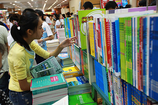 8月31日,一位初中生正在書店內(nèi)選購(gòu)英語(yǔ)輔導(dǎo)書。
