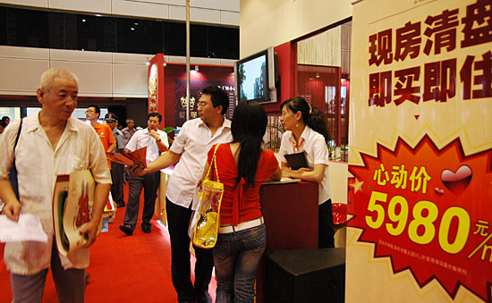 9月7日,一位參觀者被一家房產(chǎn)商推出的誘人低價現(xiàn)房所吸引。