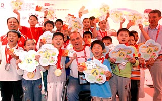 以“留住一桶水,綻放奧運(yùn)花”為主題的2008年度綠色奧運(yùn)行動(dòng)日前在奧林匹克公園舉行了隆重的頒獎(jiǎng)典禮。北京奧組委和共青團(tuán)北京市委的有關(guān)負(fù)責(zé)人為“節(jié)水小冠軍”們頒發(fā)了獎(jiǎng)牌。 “留住一桶水,綻放奧運(yùn)花”綠色奧運(yùn)行動(dòng)是北京奧組委、團(tuán)市委等部門(mén)協(xié)同可口可樂(lè)公司在小學(xué)生中發(fā)起的節(jié)水環(huán);顒(dòng),迄今已歷時(shí)4年,今年全國(guó)共有22個(gè)城市的50萬(wàn)名學(xué)生直接參與。自4月份啟動(dòng)以來(lái),僅北京地區(qū)的小學(xué)生就節(jié)約用水37500立方米。 圖為前輪椅網(wǎng)球世界冠軍、德國(guó)人凱·施拉梅爾(前中)和“節(jié)水小冠軍”們合影。 |