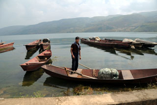 9月20日,陽宗海周邊的漁民收拾捕魚工具。作為云南九大湖泊之一的陽宗海,近期出現(xiàn)了砷濃度超標的污染現(xiàn)象,云南省政府立即在陽宗海全面實施“三禁”,即禁止飲用陽宗海的水,禁止用陽宗海的水游泳和洗浴,禁止捕撈陽宗海的水產(chǎn)品。