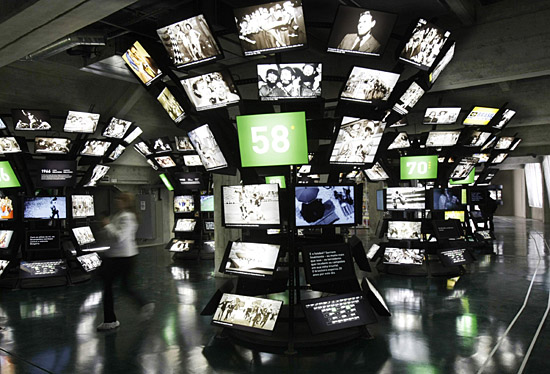 23日,參觀者在巴西足球博物館內(nèi)觀看展覽。當(dāng)日,即將于本月29日正式開放的巴西足球博物館向媒體敞開了大門,首個(gè)展覽是向“球王”貝利致敬的“貝利事跡展”。