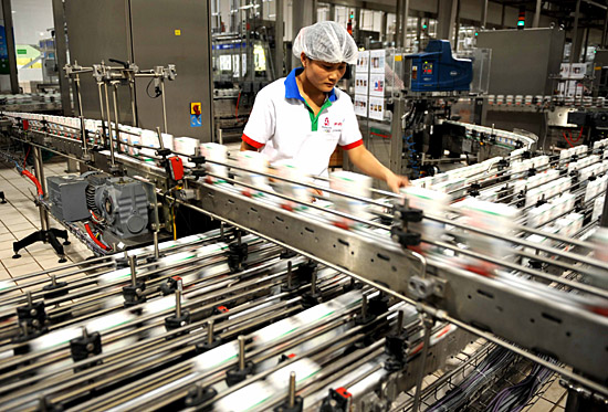 9月25日,伊利金川液態(tài)奶生產(chǎn)線正在生產(chǎn)。自“問題奶”事件以來,內(nèi)蒙古在堅(jiān)決打擊非法收售原奶、派質(zhì)檢人員駐企業(yè)監(jiān)督生產(chǎn)的同時(shí),又于9月24日決定從主席預(yù)備金中拿出1億元資金,重點(diǎn)支持伊利、蒙牛兩家企業(yè)生產(chǎn)。 | |