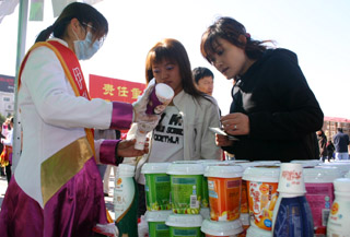 當日,內蒙古伊利、蒙牛集團在呼和浩特市街頭舉辦安全乳制品贈飲品嘗活動,旨在逐步樹立消費者信心。