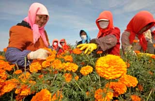 近日,寧夏銀川市金鳳區(qū)良田鎮(zhèn)種植的色素菊采收接近尾聲。近年來,該區(qū)大力推廣色素菊種植,色素菊花朵色澤艷麗,花期長,可提取有“軟黃金”之美譽(yù)的天然色素,廣泛應(yīng)用于食品、藥品著色,集觀賞性與經(jīng)濟(jì)效益于一體。目前,金鳳區(qū)共種植色素菊1500畝,每畝可為農(nóng)民創(chuàng)收700元左右。