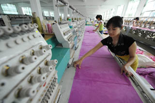 10月20日,江西恩達(dá)家紡有限公司的工人在夏布繡花生產(chǎn)線上工作。近年來,這家公司得到新余農(nóng)村合作銀行的貸款扶植,由一家小企業(yè)發(fā)展成為全國麻類產(chǎn)品出口50強(qiáng)企業(yè)。江西新余農(nóng)村合作銀行成立以來,將吸收的存款全部用于支持地方經(jīng)濟(jì)發(fā)展。兩年來,該行累計(jì)發(fā)放貸款53億元,占全市農(nóng)戶小額信用貸款和下崗再就業(yè)小額貸款100%、農(nóng)業(yè)貸款90%以上、中小企業(yè)貸款80%以上。 |