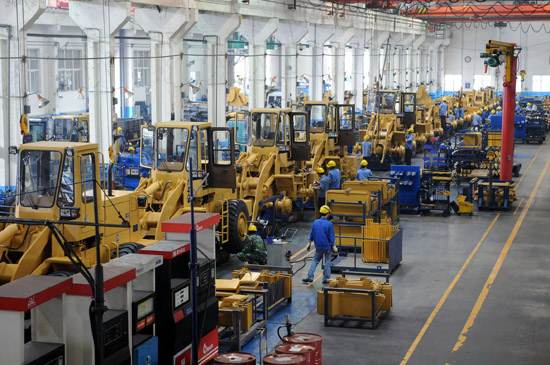 這是廣西柳工總裝車間一角(11月4日攝)。創(chuàng)建于1958年的廣西柳工機械股份有限公司,經(jīng)過多年的技術改造和自主創(chuàng)新,現(xiàn)已成為“中國工程機械行業(yè)的排頭兵”,其自主研發(fā)的輪式裝載機、履帶式挖掘機等產(chǎn)品遠銷世界50多個國家和地區(qū)。據(jù)統(tǒng)計,2008年上半年,廣西柳工實現(xiàn)凈利潤3.67億元,同比增長10.85%,裝載機、挖掘機銷量分別較上年同期增長32.1%和37.4%。