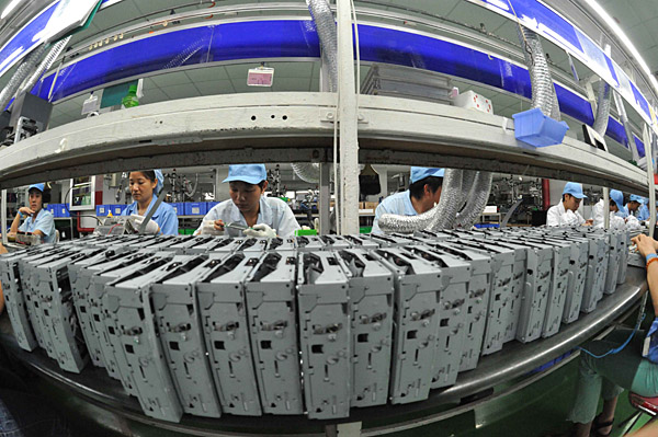 11月18日,幾位工人在深圳一家電子公司的車(chē)間中工作。 由于狠抓品牌建設(shè)、企業(yè)內(nèi)部管理和自主創(chuàng)新能力的突破,今年1到10月份深圳工業(yè)增加值同比增長(zhǎng)11.9%。1至8月的最新統(tǒng)計(jì)數(shù)據(jù)顯示深圳工業(yè)利潤(rùn)達(dá)516億元,同比增長(zhǎng)15.2%。 | |