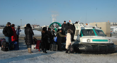 11月26日,大批俄羅斯游客在黑河口岸等待乘氣墊船回國。