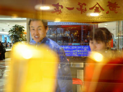 2008年,北京市黃金飾品消費(fèi)火熱。據(jù)了解,北京市著名黃金珠寶首飾專營公司菜百公司2008年1月到11月的銷售額已超33億元,而該公司2007年全年營業(yè)額為23.8億元。商務(wù)部的統(tǒng)計數(shù)據(jù)顯示,2008年上半年國內(nèi)金銀珠寶的消費(fèi)同比增長41%,是商務(wù)部28大類監(jiān)測商品中增長速度最快的行業(yè)。