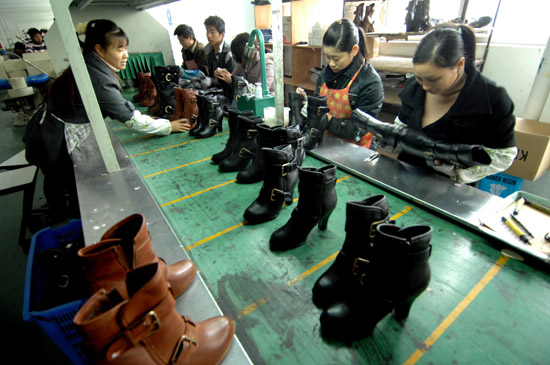 12月8日,浙江省溫嶺市冠奇鞋業(yè)有限公司的職工正在生產(chǎn)皮鞋。