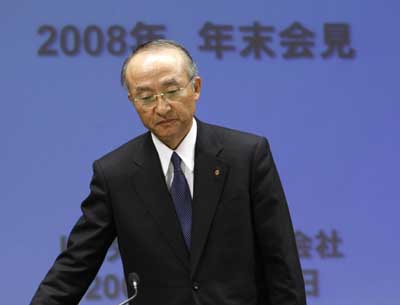 12月22日,在日本名古屋,豐田汽車公司總裁渡邊捷昭出席新聞發(fā)布會。渡邊捷昭當日宣布,豐田公司2008財年(至2009年3月)將出現(xiàn)1500億日元的營業(yè)虧損。這將是豐田歷史上首次出現(xiàn)營業(yè)虧損。