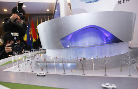 1月19日,兩名記者正在上汽通用企業(yè)館的展示模型前拍照。 當(dāng)日,作為中國2010年上海世博會(huì)的全球合作伙伴,通用汽車和上海汽車工業(yè)(集團(tuán))總公司在滬公布了參展上海世博會(huì)的企業(yè)館外觀設(shè)計(jì)方案,這是上海世博會(huì)16家企業(yè)館中唯一的汽車主題館。 上汽通用企業(yè)館將以“可持續(xù)發(fā)展的動(dòng)力移動(dòng)系統(tǒng)”為主題,重點(diǎn)展示2030年左右的汽車科技和理念。 |