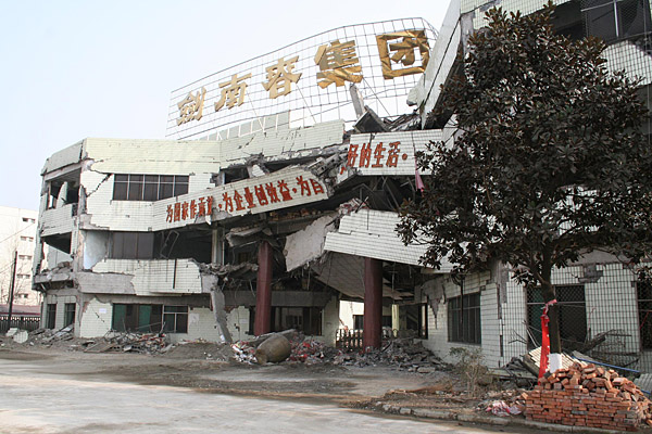 圖為在地震中受損的劍南春集團(tuán)辦公樓(1月21日攝)。 在汶川大地震中,劍南春酒廠遭受重創(chuàng),直接經(jīng)濟(jì)損失近10億元人民幣。受災(zāi)后,企業(yè)全體員工積極開(kāi)展生產(chǎn)自救。目前,劍南春酒廠釀酒能力已全面恢復(fù),灌裝能力已恢復(fù)到原先的六成。據(jù)悉,劍南春集團(tuán)計(jì)劃用兩年時(shí)間達(dá)到并超過(guò)地震前市場(chǎng)供應(yīng)和銷售收入水平。 | |