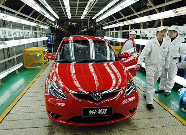 2月7日,幾名技術(shù)工人在對(duì)第一輛量產(chǎn)的悅翔新車(chē)進(jìn)行最后檢測(cè)。當(dāng)日,長(zhǎng)安汽車(chē)歷時(shí)3年時(shí)間研發(fā)的自主品牌經(jīng)濟(jì)型轎車(chē)——悅翔正式在渝下線(xiàn)。這款被長(zhǎng)安汽車(chē)定位為“好看、好開(kāi)、好省油”的經(jīng)濟(jì)型轎車(chē),排量為1.5升,軸距達(dá)到了2550mm,長(zhǎng)、寬、高分別為4360mm、1710mm、1475mm,在“AO”級(jí)市場(chǎng)同級(jí)車(chē)中擁有優(yōu)勢(shì)。據(jù)了解,長(zhǎng)安悅翔目前預(yù)計(jì)的售價(jià)在6萬(wàn)至8萬(wàn)元人民幣,2月19日將在重慶率先啟動(dòng)預(yù)售活動(dòng),3月中旬將正式上市。 | |