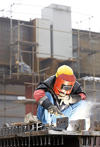 2月9日,一名工人在京滬高鐵上海虹橋站工地焊接地下鋼梁。春節(jié)假日期間,千里京滬高速鐵路建設(shè)工地,依然是一派熱火朝天的施工景象。京滬高速鐵路全線開(kāi)工以來(lái),取得的成績(jī)超過(guò)預(yù)期,開(kāi)局之年各項(xiàng)建設(shè)任務(wù)目標(biāo)均如期順利完成。 | |