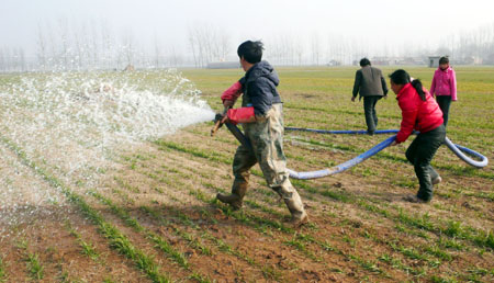 按照往年的抗旱經驗,我認為要注意以下幾點:一是加快冬灌進度,挖掘一切水源,做到應澆盡澆。二是科學澆水,應在日平均氣溫3℃以上的晴天中午前后澆水,盡量小水細澆,防止大水漫灌。三是及時追施肥。四是搞好中耕,對冬灌麥田普遍進行中耕,防止土壤板結;對沒有澆水條件的麥田,通過鎮(zhèn)壓和秸稈覆蓋等措施進行保墑防寒。(據(jù)新華網(wǎng))