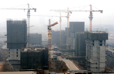 根據(jù)河北省工經(jīng)聯(lián)發(fā)布的信息,河北省2008年完成房地產(chǎn)開發(fā)投資1062.6億元,同比增長49.8%,增速居全國第2位。全省商品房銷售面積1919.5萬平方米,同比下降7.2%。圖為石家莊市槐安路與談固南大街交叉口處在建的樓群。