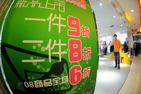 2月10日,沈陽一家體育用品專賣店,促銷宣傳廣告醒目。當(dāng)日,國家統(tǒng)計(jì)局發(fā)布的數(shù)據(jù)顯示,1月份我國居民消費(fèi)價(jià)格總水平(CPI)進(jìn)一步回落、總體趨穩(wěn)。1月份CPI同比上漲1.0%,漲幅連續(xù)9個月呈回落態(tài)勢,與去年12月相比,CPI環(huán)比上漲了0.9%。新華社記者:李鋼