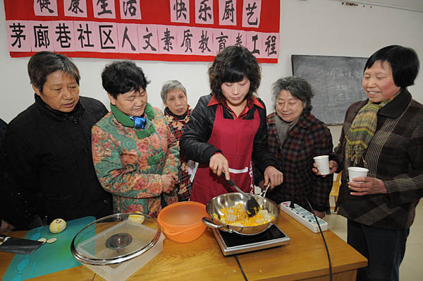 3月4日,杭州茅廊巷社區(qū)的居民們正在學(xué)習(xí)柚子茶的制作。該社區(qū)推出多種興趣課程,居民只要憑著社區(qū)免費發(fā)放的“終身教育券”就可以來聽課學(xué)習(xí)。 杭州上城區(qū)是“全國社區(qū)教育實驗區(qū)”,上城區(qū)通過給各社區(qū)居民發(fā)放金額不等的終身教育券,構(gòu)建終身教育體系、推進學(xué)習(xí)型城區(qū)的建設(shè)。目前整個杭州市上城區(qū)推出了八大工程共100項的學(xué)習(xí)內(nèi)容,包括就業(yè)培訓(xùn)、科普知識、趣味生活等多種培訓(xùn)內(nèi)容。 | |
