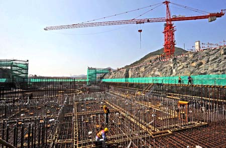 中核集團三門核電項目一期工程1號機組核島基礎施工現(xiàn)場(3月15日攝)。