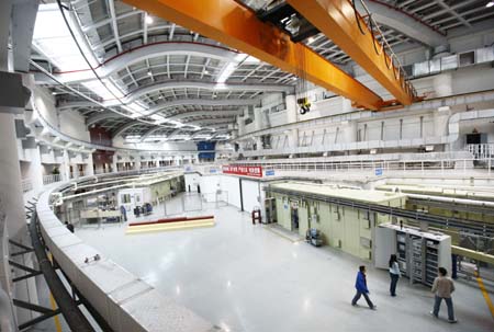 圖為3月16日拍攝的“上海光源”高性能電子儲存環(huán)旁的部分實驗站。 據(jù)悉,世界矚目的我國重大科學(xué)工程“上海光源”建設(shè)進展順利,將按工程計劃于今年四月底建成并投入使用。總投資約12億元的“上海光源”工程坐落于上海浦東張江高科技園區(qū)內(nèi),占地面積約20萬平方米。同步輻射光源被科學(xué)家稱之為繼電光源、X光源和激光光源之后,第四次為人類文明帶來革命性推動的新光源。