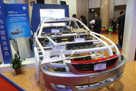3月19日,一家參展商展出用塑料零件代替金屬零件、通過減輕自重達(dá)到節(jié)能減排效果的汽車模型。當(dāng)日,2009中國國際節(jié)能減排和新能源科技博覽會在北京展覽館舉行。展會以“節(jié)能減排、振興經(jīng)濟、科技創(chuàng)新、開拓未來”為主題,來自國內(nèi)外的200多家企業(yè)和機構(gòu)參展。